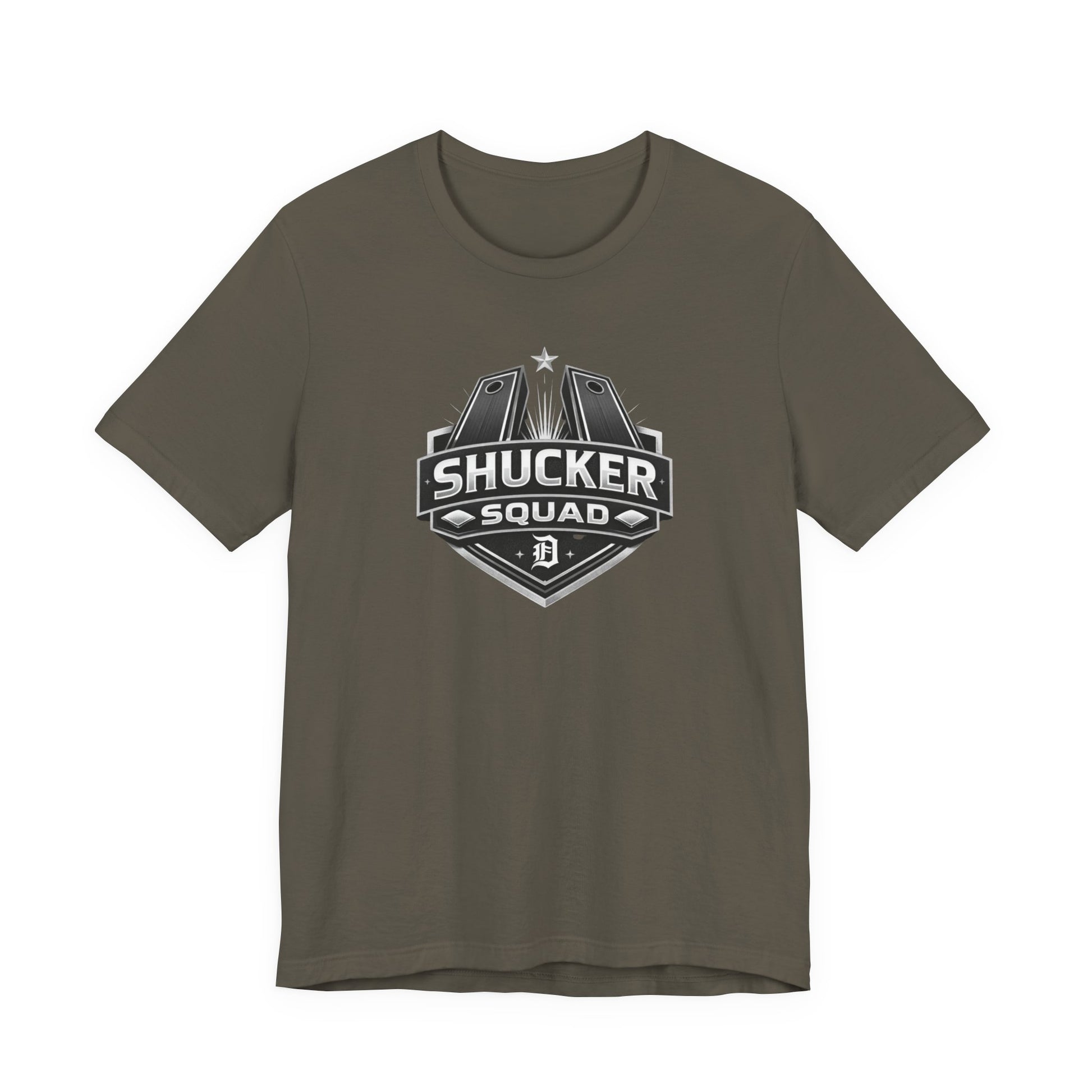 Rep your crew and your game with the Shucker Squad Tee, a clean, bold design made for cornhole players who bring heat every throw. Featuring a sharp, shield-style logo with crossed boards and subtle star details, this shirt delivers a tough, competitive look that fits right in at league night, tournaments, or the bar after a deep run.